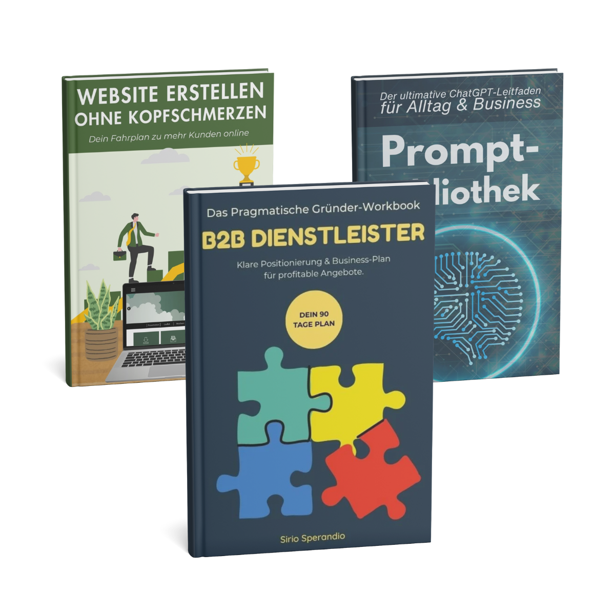 Der „B2B Gründer-Turbo-Start“ liefert Dir das gesamte Fundament, um Dein Dienstleistungs-Business strategisch aufzubauen, professionell zu präsentieren und maximal zu beschleunigen.